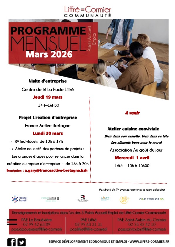 Point Accueil Emploi - mars 2026 Visite d'entreprise / création d'entreprise / atelier cuisine Suivant