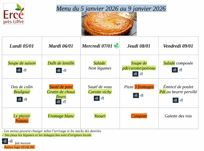 Menu du restaurant scolaire du 5 au 9 janvier 2026