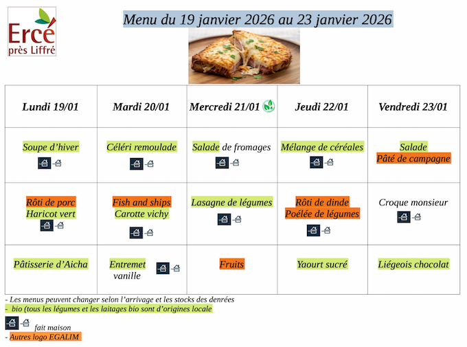menu du 19 au 23 janvier
