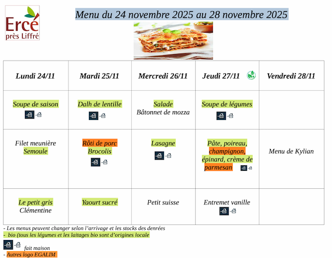 menu restaurant scolaire semaine 48 menu du restaurant scolaire du 24 au 28 novembre Précédent Suivant