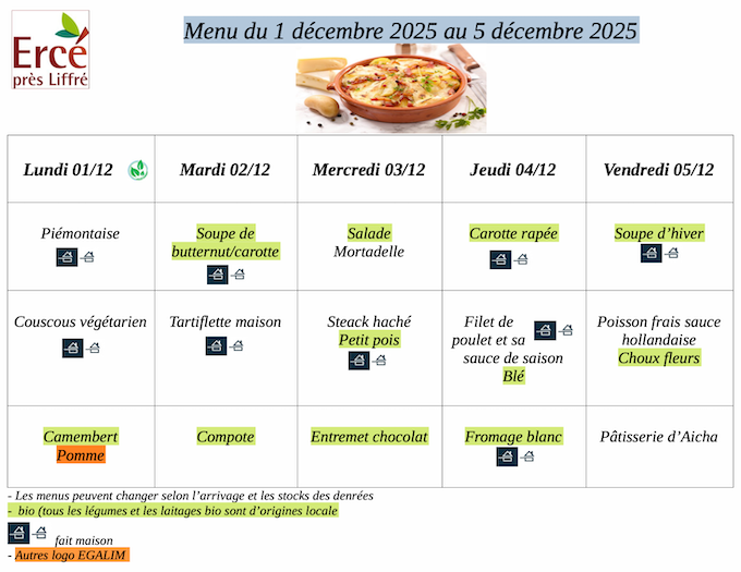menu restaurant scolaire semaine 49