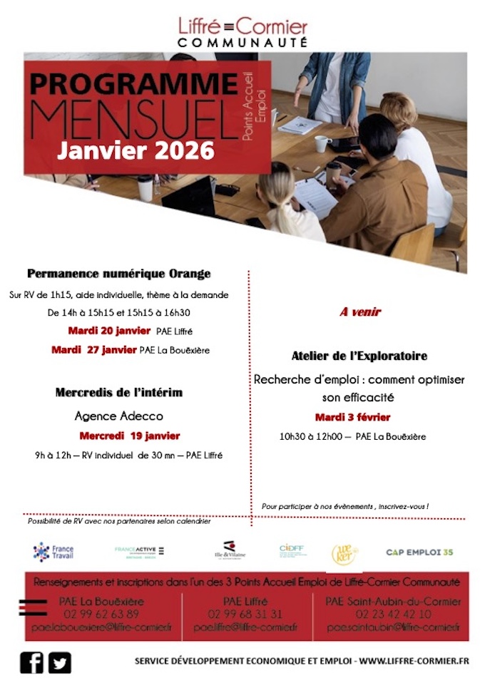 Point Accueil Emploi - janvier 2026 Permanences numérique, Agence Adecco, atelier exploratoire... Suivant