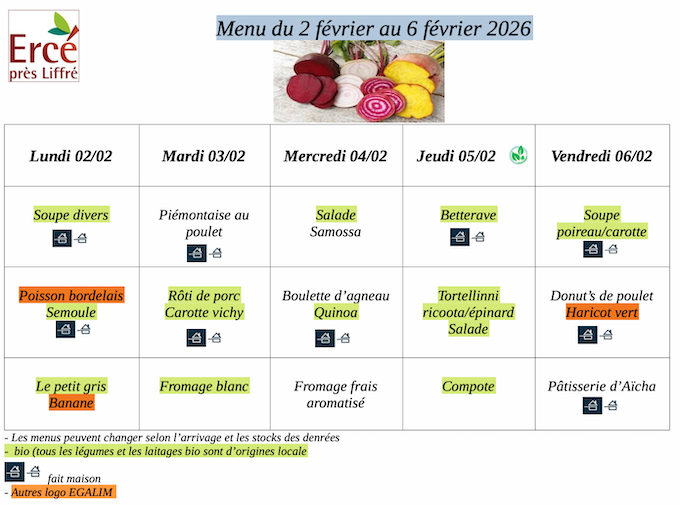 menu restaurant scolaire semaine 6